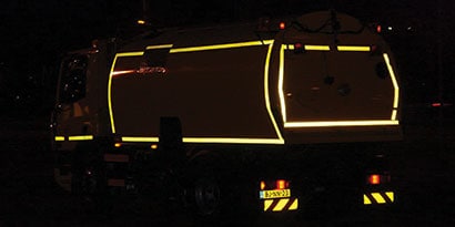 Sử dụng băng keo phản quang trên xe cấp cứu, xe cảnh sát, xe buýt , xe cào tuyết, xe rác và các xe công ích có thể giữ an toàn cho công nhân viên, công dân và cả phương tiện.